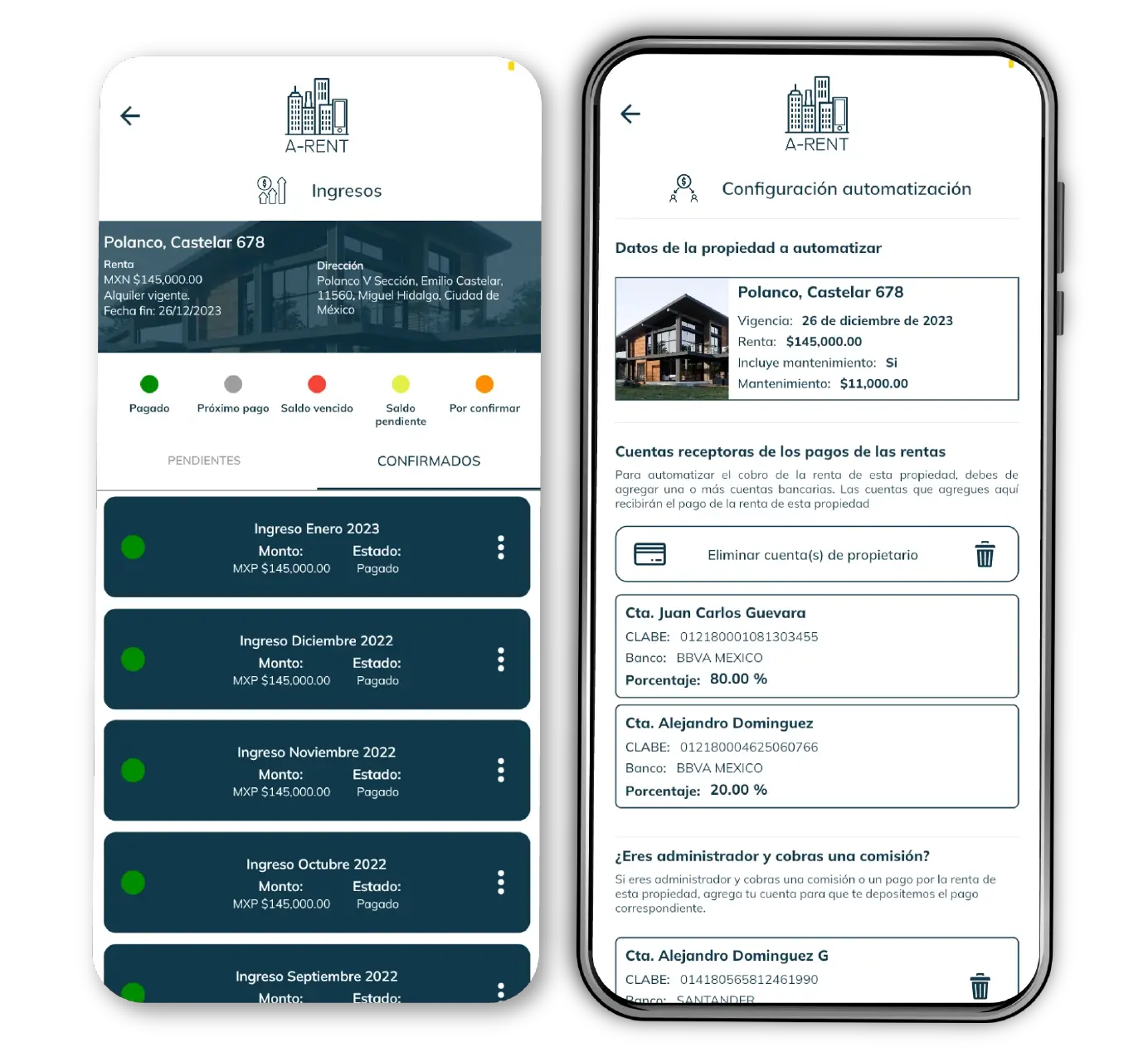 Con nuestro sistema automático de recolección de rentas y dispersión de pagos, olvídate de estar monitoreando cuentas de banco para confirmar cada pago de renta que realicen tus inquilinos. También olvídate si los pagos fueron hechos a tiempo o no, A-RENT te tiene cubierto, tu fijas las condiciones para la recolección de pagos de renta y A-RENT lo ejecuta de manera precisa por ti.
