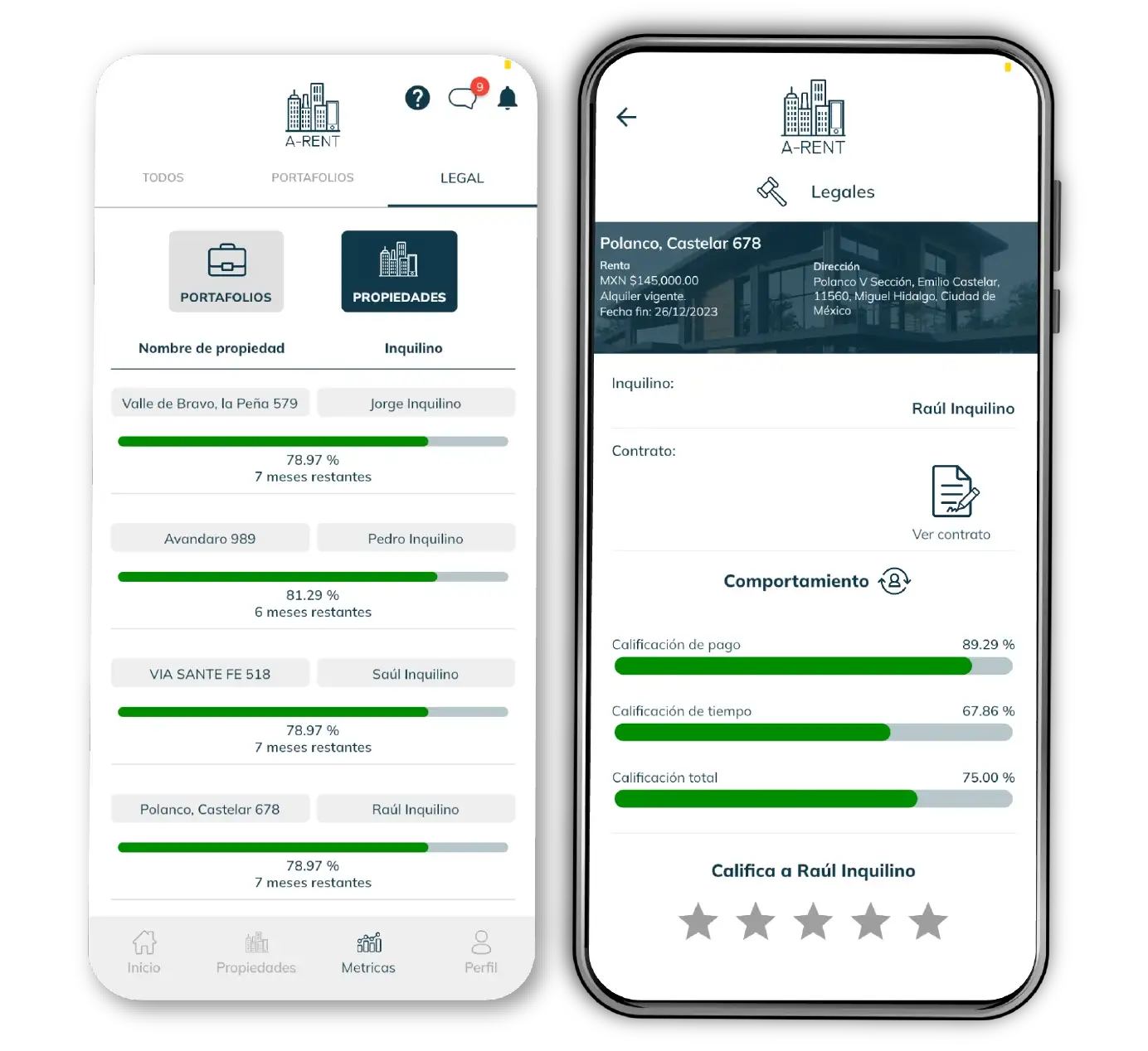 A-RENT te otorga la calificación y comportamiento de pagos en rentas de cada inquilino que este en nuestra base de datos, para que minimices riesgos al rentar tus inmuebles y obtengas a los mejores prospectos.